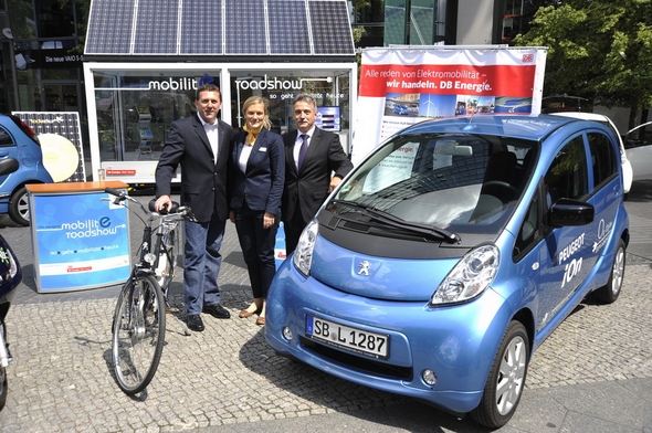 Gemeinsam mit den Kooperationspartnern Solarkauf und DB Energie sorgt Peugeot außerdem gleichzeitig noch für eine weitere Premiere, denn wohl zum ersten Mal wird im Rahmen der Roadshow eines Autoherstellers die Effizienz erneuerbarer Energien in den Mittelpunkt gestellt. Einen Eindruck davon, wie viel Energie zum Beispiel durch die Sonne gewonnen werden kann und welche Kilometerfahrleistungen Elektromobile dadurch erreichen können, vermittelt ein von Solarkauf gestellter Glascontainer mit sechs Photovoltaikfeldern. Außerdem stellt DB Energie die im Auftrag von Peugeot realisierten Dienstleistungen rund um die Ladeinfrastruktur vor – darunter auch die Beschaffung und Installation der Ladegeräte und die Prüfung der vorhandenen Anlagen. Optional wird auch das „Tanken“ mit 100 Prozent erneuerbaren Energien von DB Energie angeboten – unter regelmäßiger Kontrolle des TÜV Süd.